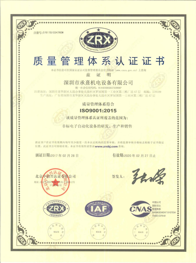 深圳市承熹機(jī)電設(shè)備有限公司成立于2010年,是一家專(zhuān)注于貼合設(shè)備行業(yè)的廠(chǎng)家,主要從事于3D曲面貼合設(shè)備、鋼化膜貼合設(shè)備、大尺寸貼合設(shè)備、非標(biāo)自動(dòng)化貼合設(shè)備的科研開(kāi)發(fā)、生產(chǎn)制造、銷(xiāo)售服務(wù)。